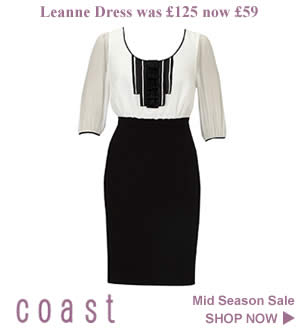 OFFER NOW EXPIRED The Coast Mid Season Sale is now in full flow with more items added. We spotted this sophisticated 2 in 1 style dress in mono less than half price. The dress has a soft silk blouse and slim fitting pencil skirt.