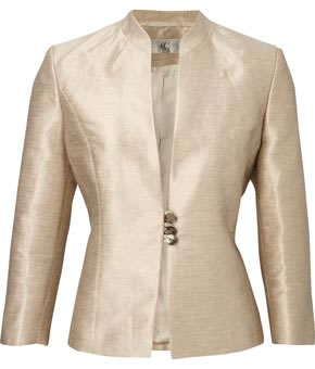If the jacket is to be worn with a skirt a simple satin camisole can be worn underneath in the same colour. The fitted style will flatter your figure making you feel ultra feminine while the gold tone sheen will add elegance.