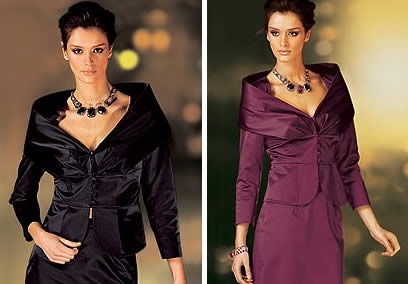 A large collar evening jacket and peplum dresses are a popular part of the new autumn and winter collection this year. Tailored to accentuate an hourglass figure with its stylish wide collar and nipped-in waist. Team with the matching classy skirt and radiate instant glamour and sophistication.