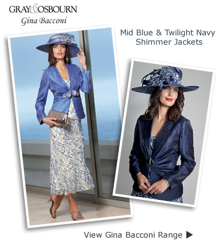 It’s time to dress up so let the fabulous Gina Bacconi collection inspire you to find that special occasion outfit. Their latest range of shimmer jackets come in two sensational shades of twilight navy and mid blue. You can buy a complete wedding ensemble with fully co-ordinating jacket, top and skirt plus matching hat. Other designer labels include Chesca, Fenn Wright Manson and Gerry Weber.