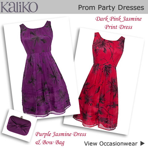 Dressing up for a day at the races can be fun and flirty in a prom dress complete with matching accessories. For a summer wedding a purple dress with bolero and fascinator makes an eye-catching combination. When it comes to party time it has to be one of Kaliko’s maxi dresses.