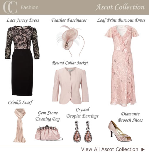 Capture your own winning style with the latest Ascot collection from CC. Be inspired with the pretty summer pieces in soft shades of pastel pinks, lilacs and cream for daytime elegance, whatever the occasion. Enjoy putting together a fabulous combination with fully coordinating pieces and accessories to match. Crystal droplet earrings, pearl necklaces, diamante brooches, and feather fascinators add the perfect finishing touch. View latest race day outfits