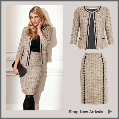 This classic tweed suit is the best of the season for keeping your look chic day or night. Sharp tailoring is making a come back with this immaculately cut skirt suit that will work around the clock on so many occasions. The shade is seriously on trend with catwalk colours of nude and neutral.