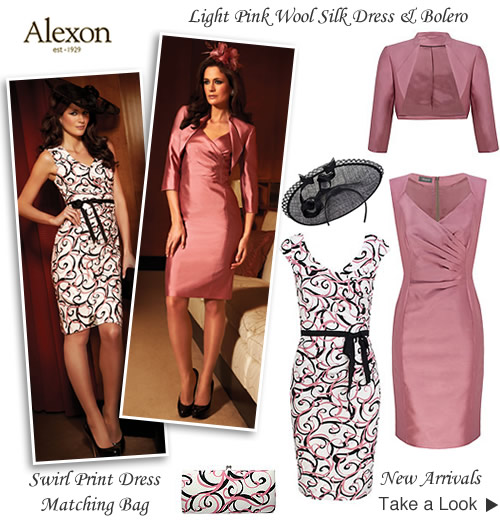Ensure your next going out dress is a chic one with these two fabulous fashion finds. The light pink dress with wrap over front neckline coordinates perfectly with the wool silk bolero. Mix up your look with the figure flattering swirl print dress. Wear as a two piece outfit or keep it simple with heels and stylish clutch bag.