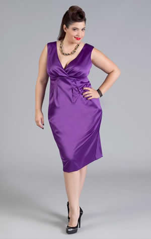 The simplicity of a sheath dress look great on girls with curves and the shiny fabric adds a touch of pizzazz. Outfits and dresses in plus sizes are designed to flatter the fuller figure with slimming styles and bra friendly straps.