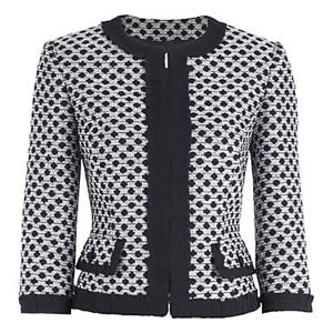 The sale is proving popular with many sizes selling out fast.Fortunately we noticed this smart Precis Petite occasion jacket in stock with sizes 8, 10, 12, 14, 16, 18. Navy and ivory come together perfectly to make an ideal cropped evening jacket to wear with dressy trousers.