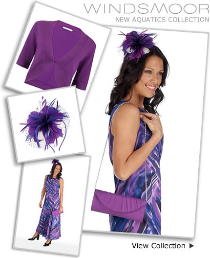 The spring and summer collection from Windsmoor is a print sensation with skirts dresses and tops in an array of beautiful designs. Bring your wardrobe alive with the new nautical inspired Aquatics collection in smudge, watercolour, splash and poppy prints. For a new look on modern tailoring the New Monaco combines vibrancy and elegance with abstract, geometric, chevron and graphic prints in neutral and poppy brights.Purple occasion dresses and outfits are perfect for a summer and winter weddings.