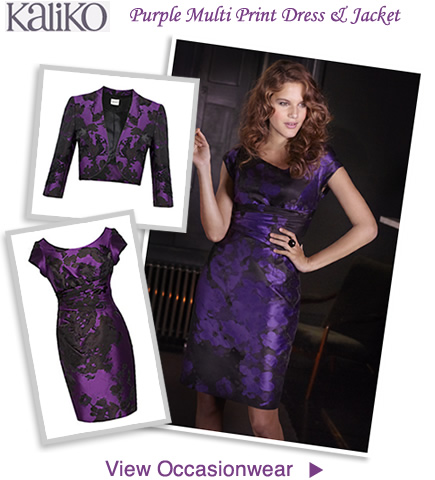 Celebrate the festive season in style with one of Kaliko’s charming occasion dresses with matching jacket. This vibrant purple shift dress will add drama to after dark events like no other. It’s seductive and feminine hues will deliver head-turning wow wherever you go. Amp up the glamour with coordinating jacquard jacket and classic heels.